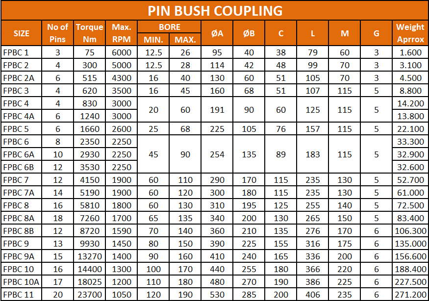 Product Name: Flexible Pin Bush Coupling (FPBC) Capacity: Up to 23,700 Nm / 1050 RPM Max Bore: 530 mm